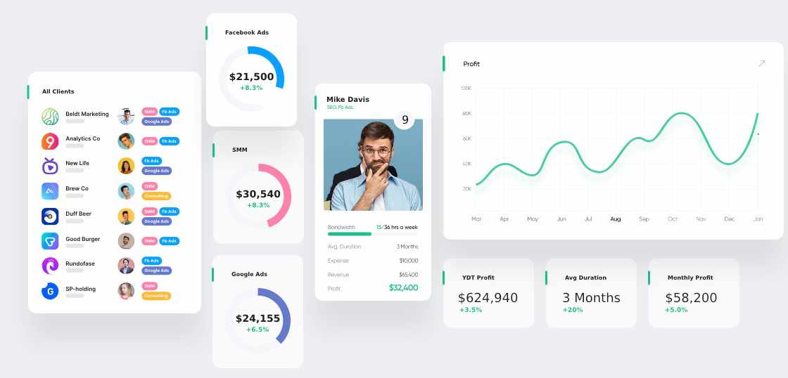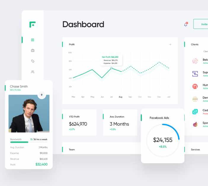 Assign new clients/projects to available resources. View utilization, compare retention & profitability across your entire team.