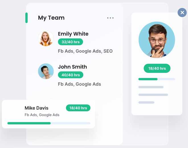 Assign new clients/projects to available resources. View utilization, compare retention & profitability across your entire team.
